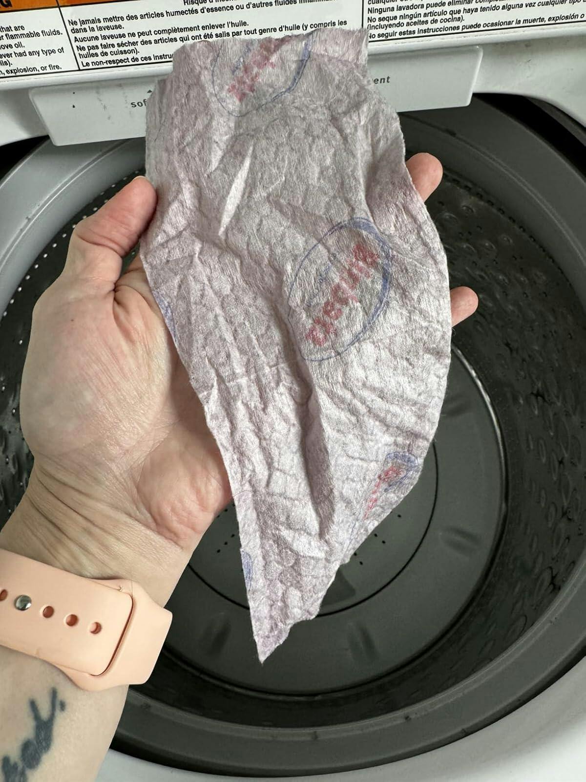 USING METHOD: All you need to do is put the dye catching sheet in the washing machine together with detergent and clothes, and turn on the washing machine as usual. Discard the sheet after using and you can see the color has been absorbed by it. And it's strong enough, so you don't have to worry about it generating crumbs or being shredded by the washing machine.